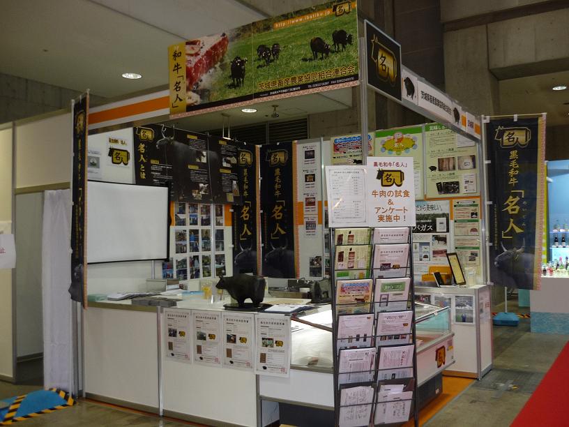 本会では、関係団体(全畜連・雪印種苗㈱・名人会運営協議会・バイオ科学㈱・㈱ワイピーテック・㈱石井大一商店)との協賛により「黒毛和牛“名人”」の出展ブースを設け、配合飼料「名人」で育てた美味しい牛肉をPRしました。今回が4回目の出展であり多くの来場者に飼料のこだわりや飼育管理方法を理解していただけたように感じております。また、約4,000名の方々に各種牛肉商品を試食していただきましたが、中でも脂の旨みがポイントである「コンビーフ」の評判が大変良く、名人の美味しさに自信を深めることができました。